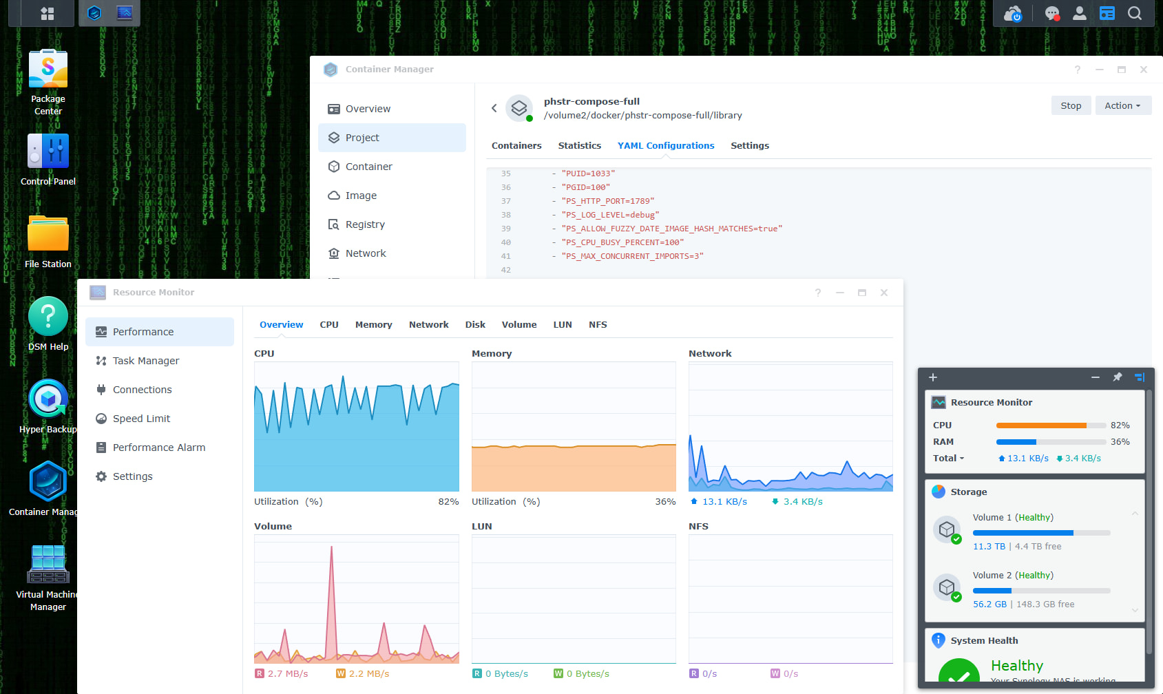 I’m trying out alpha.7 on a Synology DS920+ with the Docker GUI. So far I have: